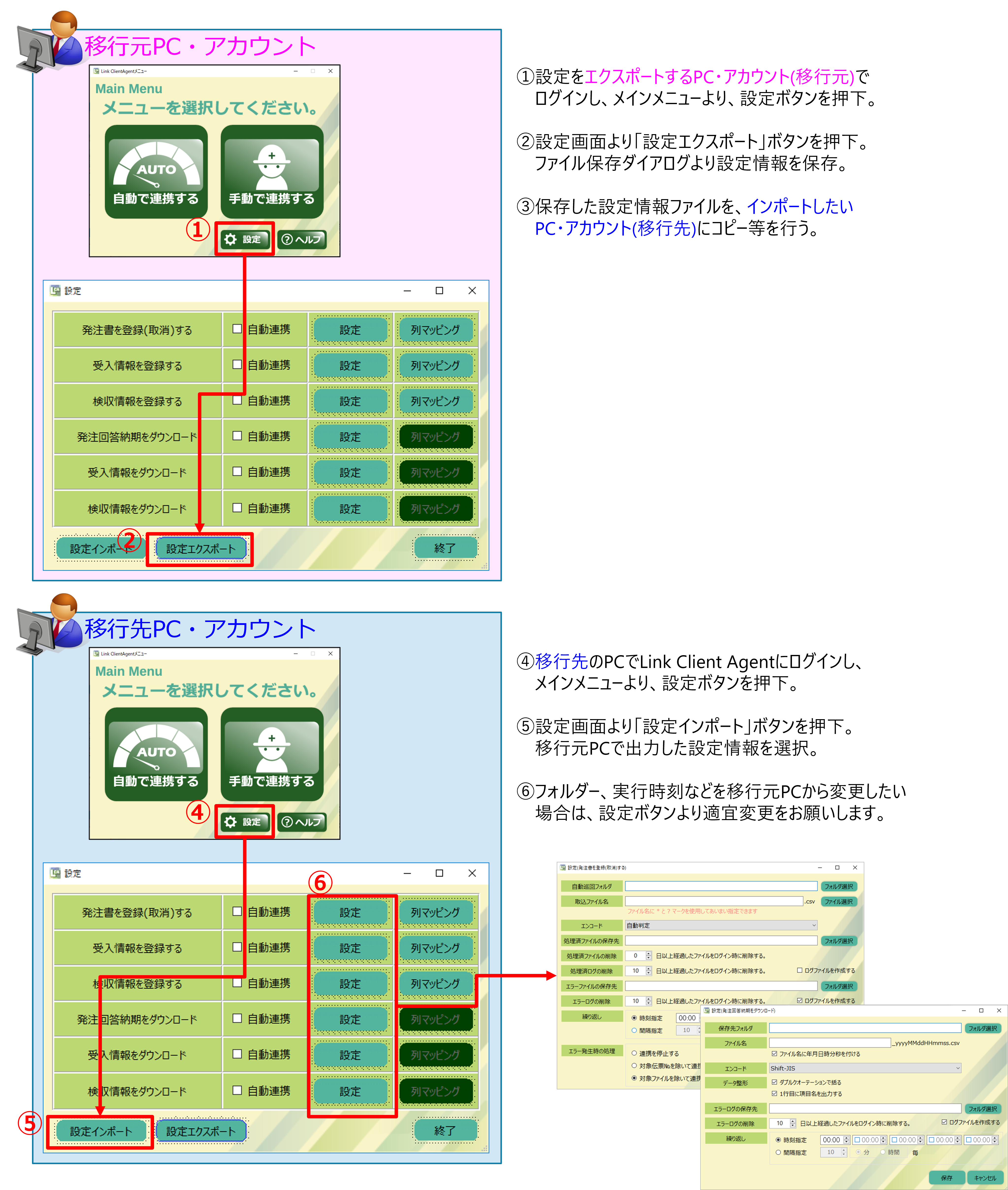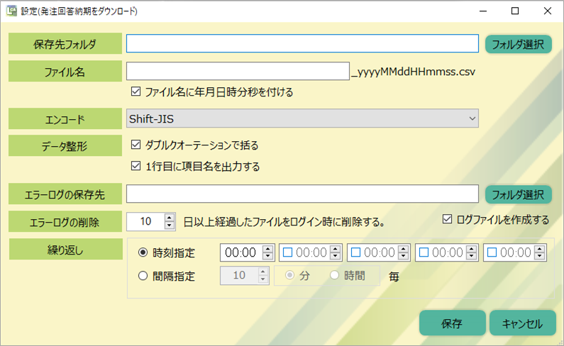 | 保存先フォルダ | 連携ファイルをダウンロードするフォルダを指定します。 |