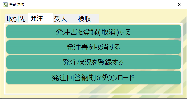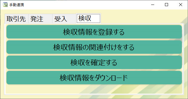 BtoBプラットフォームに登録した発注データの納入状況と検収状況を更新します。 状況の更新のみで、実際の受入データ、検収データが作成されるわけではありません。 |