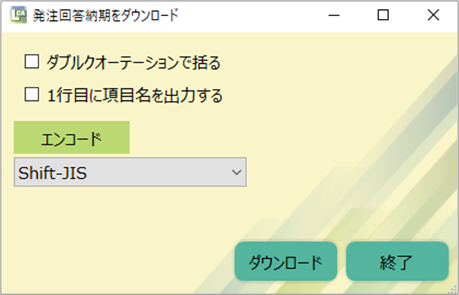| データ整形 | 項目間をダブルクォーテーションで括るかどうか、1行目に項目名を出力するかどうかを指定します。 |